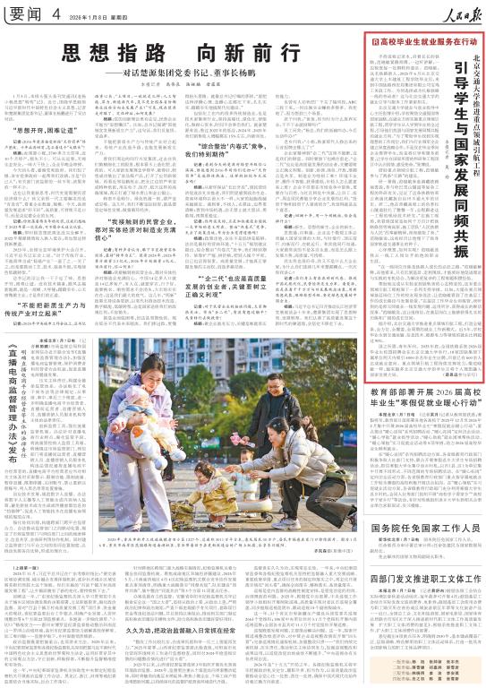 1月8日,人民日报以“北京交通大学推进重点领域引航工程 引导学生与国家发展同频共振”为题,专篇报道我校就业工作。报道介绍了我校聚焦交通强国等国家战略,在就业方面实施重点领域引航工程,贯穿学生从入学到毕业的全过程,打造全链条、全方位、全覆盖、全周期的就业工作新模式。