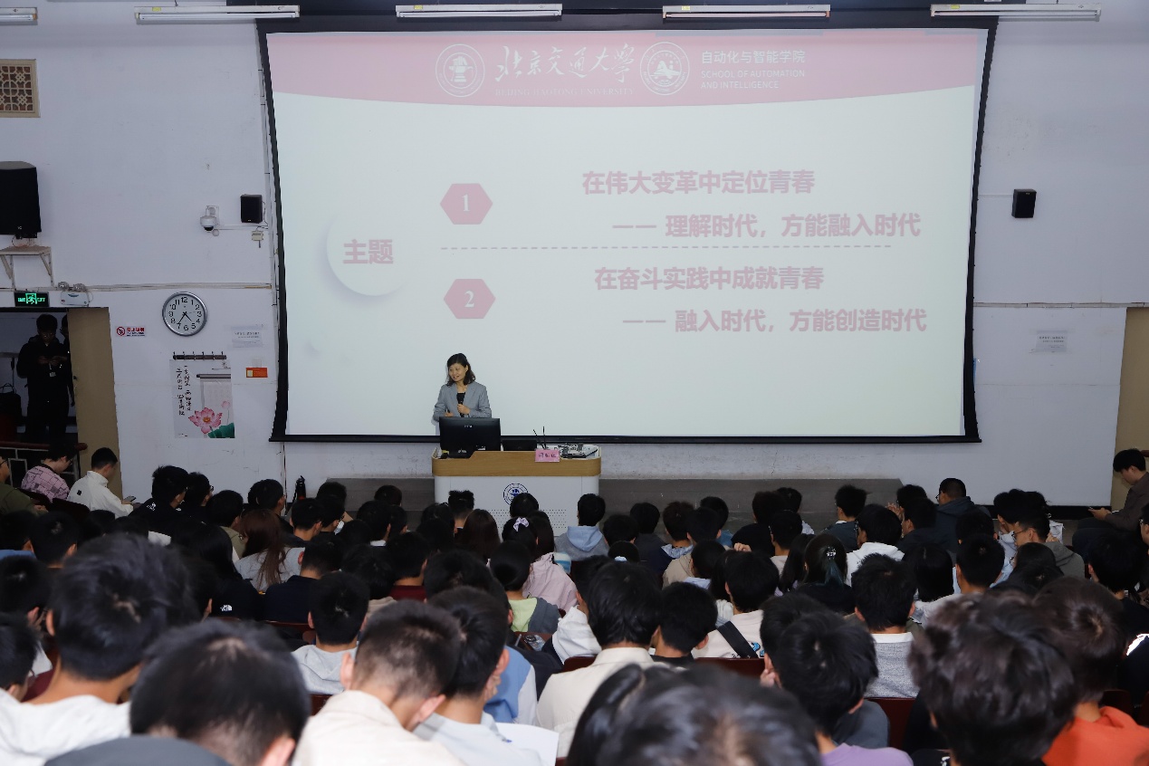 闻映红围绕“在伟大变革中定为青春”“在奋斗实践中成就青春”两部分内容,为新生们上了一堂思想深刻、内涵丰富的“理想信念第一课”。她围绕百年未有之大变局深入解读了世界发展大势,讲解了中国式现代化的特征和内涵,带领学生深入学习贯彻习近平总书记在纪念抗战胜利80周年大会上的重要讲话精神,并勉励广大学生要把握历史机遇、担负时代使命,志存高远,挺膺担当,用青春的能动力和创造力激荡起民族复兴的澎湃春潮,为推进中国式现代化贡献青春力量。