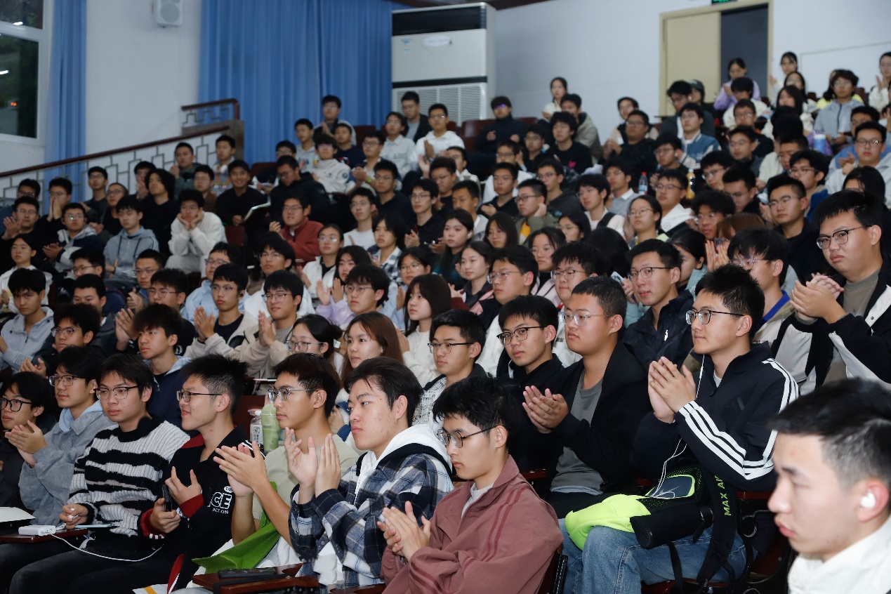 10月16日下午,智能学院党委书记闻映红在五教东阶梯教室为242名本科新生讲授了题为《准确把握时代际遇 脚踏实地追求卓越》的“开学第一课”。
