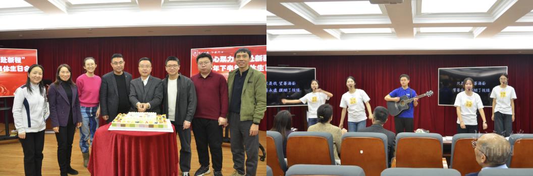 岁末将至,为给教职工们送上冬日里的温暖与关怀,法学院工会于2025年12月12日中午举办“凝心聚力共赴新程”2025年下半年集体生日会。法学院党委书记兼院长张立学、副书记副院长秦莹、副院长朱本欣与全院教师共同庆祝美好时光。本期活动由国际法学系工会小组长王晨轮值主持。