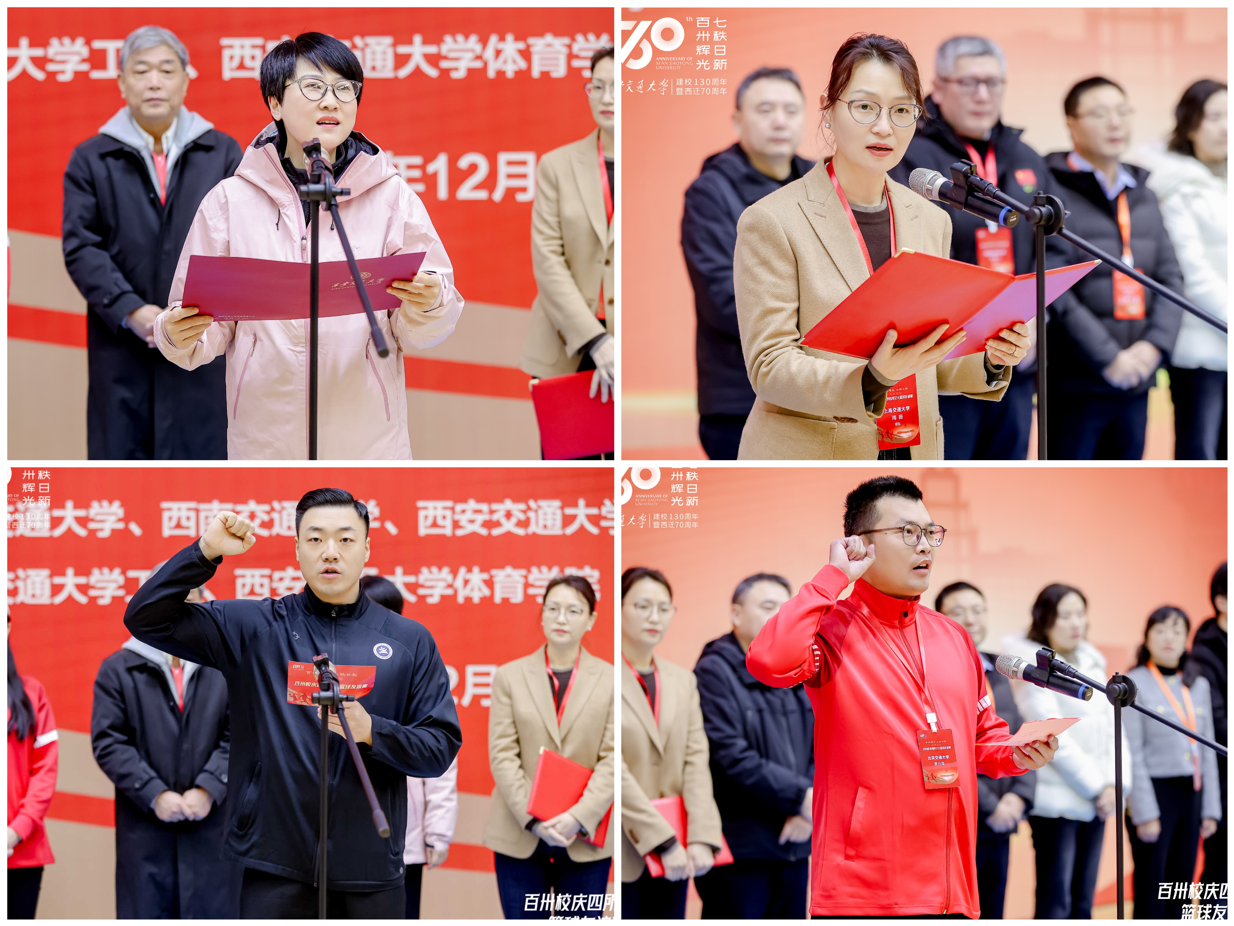 西安交通大学党委副书记王欢致欢迎词,上海交通大学工会主席周薇代表兄弟高校工会致辞,陕西省篮协国家级裁判员马赫远代表裁判员宣誓,我校教职工篮球协会秘书长李兴华代表运动员宣誓。王欢宣布比赛正式开始。