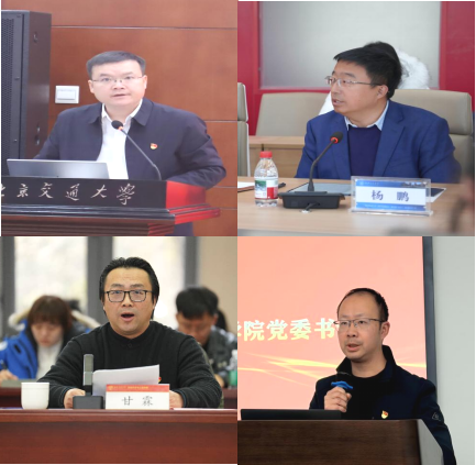 四个学院党委书记分别进行了致辞。北京交通大学环境学院党委书记向宏军回顾了四校同源的深厚情谊和四所交大共同的精神追求,简要介绍了北京交大环境学院建院以来的突破性成就,并指出百卅校庆的时代意义以及“两山”理念的实践要求,寄语青年党员要传承交通大学的精神血脉,以此次活动为起点,在“理论共学”中坚定绿色信仰,在“交流研讨”中激发创新智慧,在“实践联动”中锤炼过硬本领,成为未来生态文明建设的生力军和主力军,在生态文明建设的赛道上勇立潮头。
