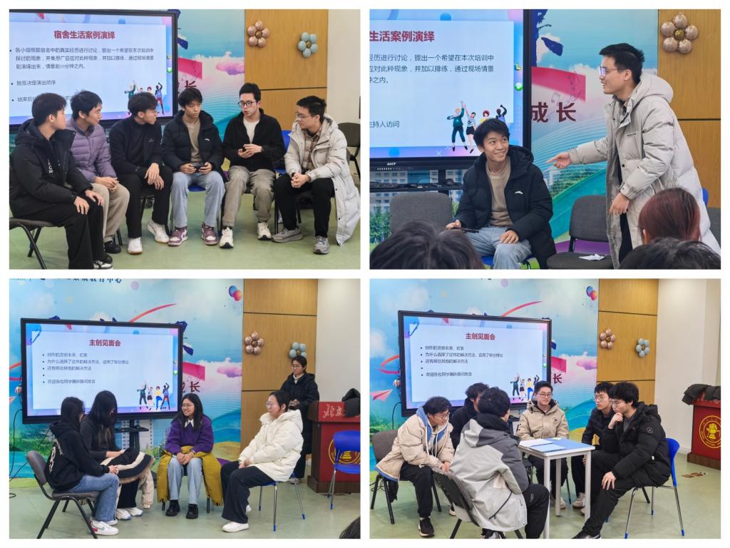 在案例演绎环节,各小组通过情景剧的形式展示宿舍生活中出现的实际问题以及解决方案。展示结束后,组间进行了深入交流,培训师对每组表现给予了专业点评。