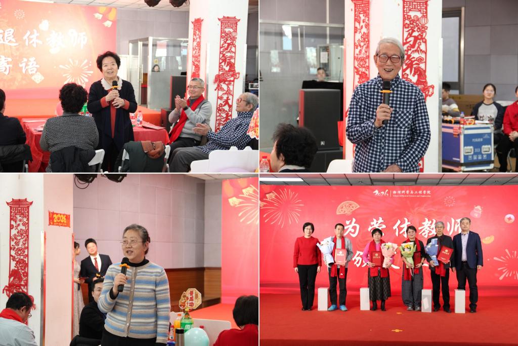 学院老领导、退休教师代表也来到现场送上新年寄语,字里行间满是牵挂与期许,传承着物理工程学院的育人情怀与精神力量。随后,学院为5位光荣退休的老教师举行荣休仪式,刘颖、彭继迎为他们颁发荣休证书及纪念品,向他们数十年如一日的无私奉献致以最崇高的敬意。