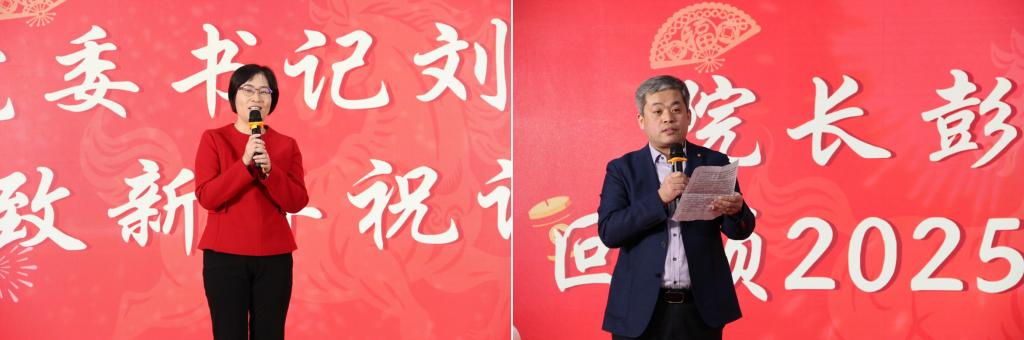学院党委书记刘颖向全体教职工送上新年祝福,鼓励大家在新的一年拿出跃马扬鞭的勇气,激发万马奔腾的活力,保持马不停蹄的干劲,继续凝心聚力、奋勇前行。院长彭继迎全面回顾了 2025 年学院工作成绩,一串串亮眼数据见证了学院的成长与蜕变,让在场师生备受鼓舞。他也鼓励全院教职工坚定信心、乘势而上,在新的一年继续努力,并祝愿大家新年快乐、万事顺遂。