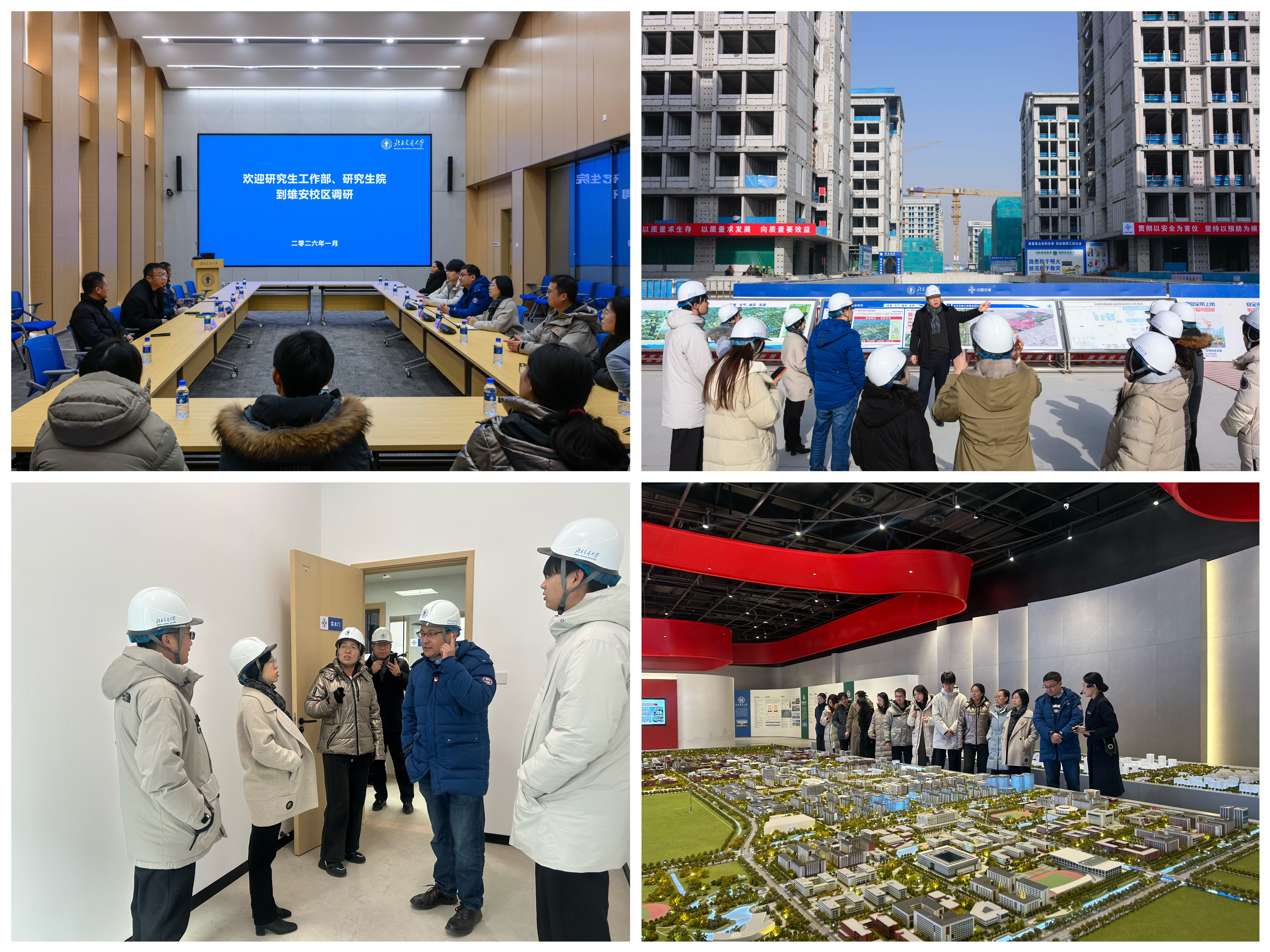 为科学谋划“十五五”时期研究生教育培养与管理服务工作,助力学校“一校多区”高质量发展,1月15日,研究生院研究生工作部联合党支部在党支部书记、研究生工作部部长高永峰和研究生院常务副院长唐爱伟带领下,赴雄安校区开展调研。校长助理、雄安校区建设指挥部指挥长信心与支部成员亲切交流,雄安校区建设指挥部副指挥长、雄安校区建设办公室副主任沈岩,雄安校区建设信息化办公室主任王芳、雄安校区建设办公室副主任祝虹煜、胡飞飞等出席活动。