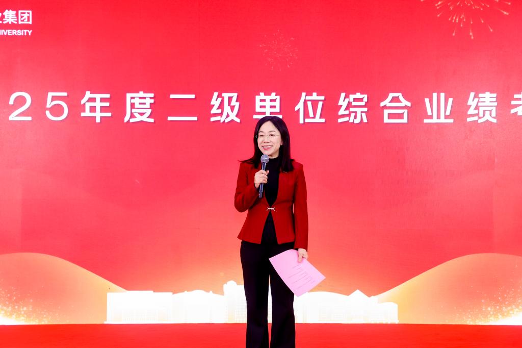 后勤集团党委书记郝志如宣布2025年度二级单位综合业绩考核结果。修缮服务中心、楼宇服务管理中心、学生公寓管理中心分别获评年度考核前三名。