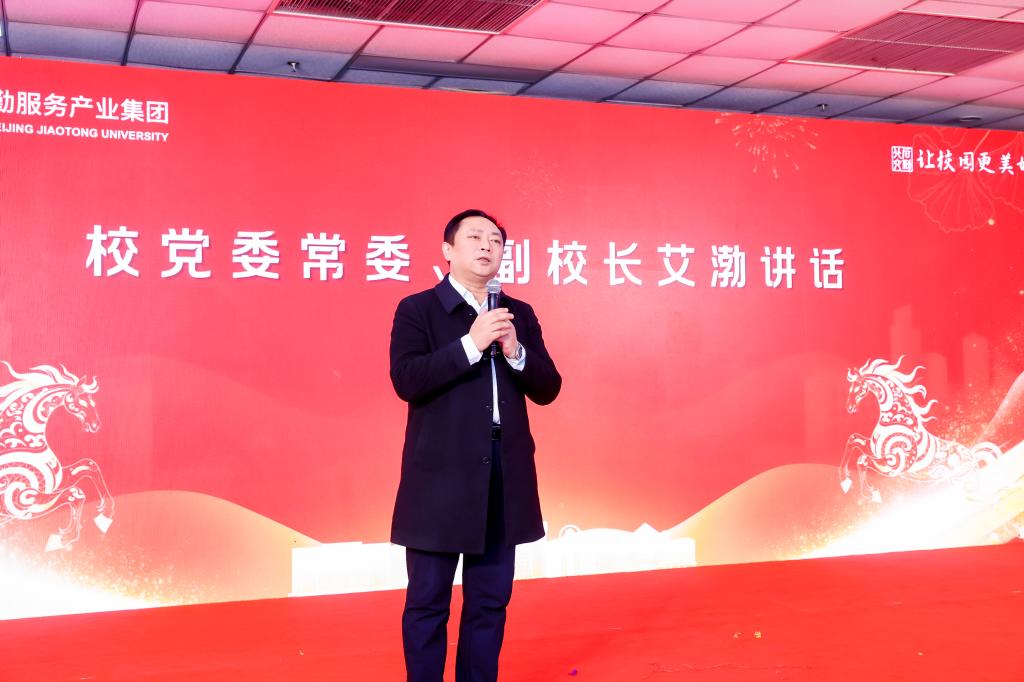 校党委常委、副校长艾渤出席并致辞。他代表学校党政对后勤集团一直以来的辛勤付出表示感谢,并向全体干部职工致以新春问候。他指出,2025年后勤集团上下齐心,在安全稳定、服务保障和改革发展等方面取得显著成效,为学校教学科研和师生生活提供了坚实的后勤保障。他强调,面向未来,后勤集团要继续以“师生满意”为导向,进一步夯实安全基石,创新服务模式,提升保障效能,深化育人功能,以更加昂扬的斗志和更加务实的作风,为学校“双一流”建设再立新功。