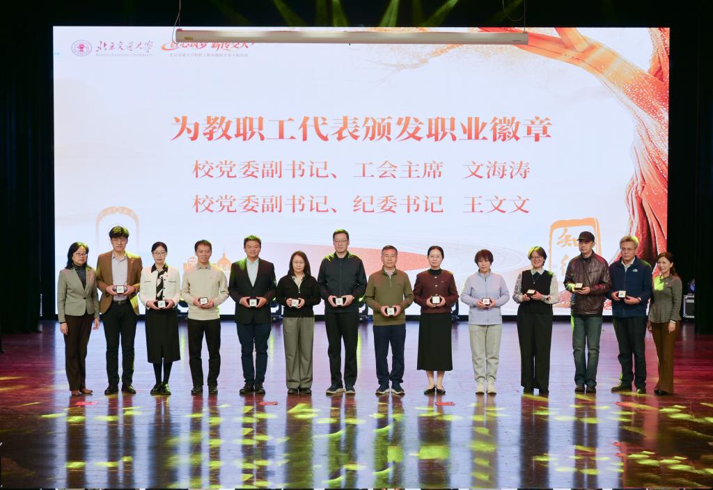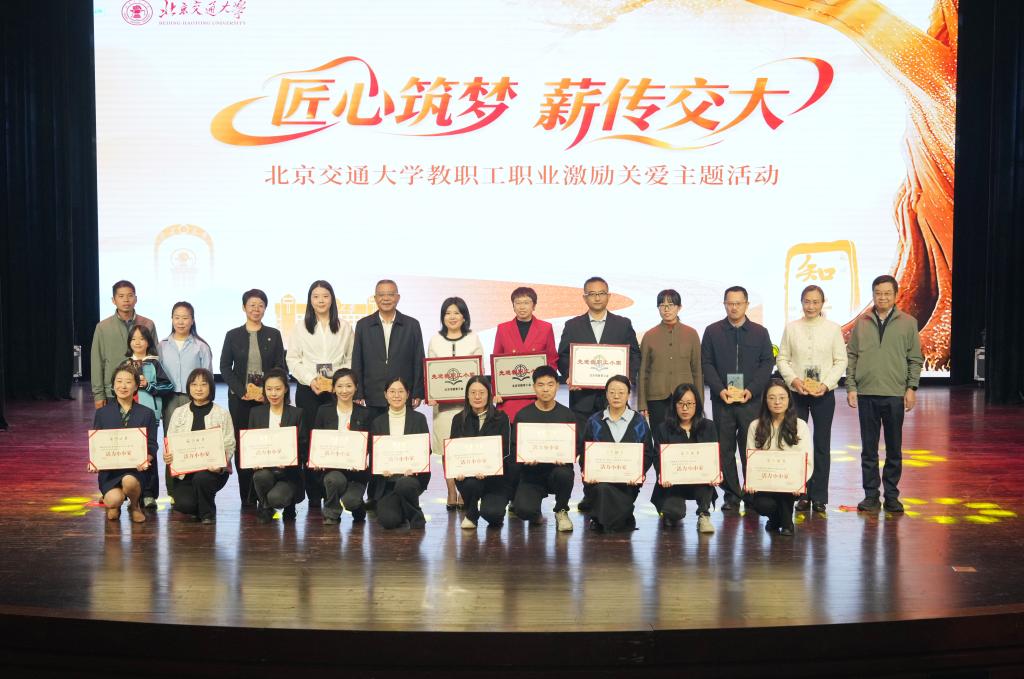 10月22日,正值我校工会成立76周年,“匠心筑梦·薪传交大”——北京交通大学教职工职业激励关爱主题活动在学生活动中心小剧场温情启幕。党委书记陈子季,党委副书记、工会主席文海涛,党委副书记、纪委书记王文文出席活动,学校相关部门负责人、二级单位党组织书记、工会主席,从教30年、入职20年、入职10年、新入职教职工代表和获奖教职工代表近200人参加活动。