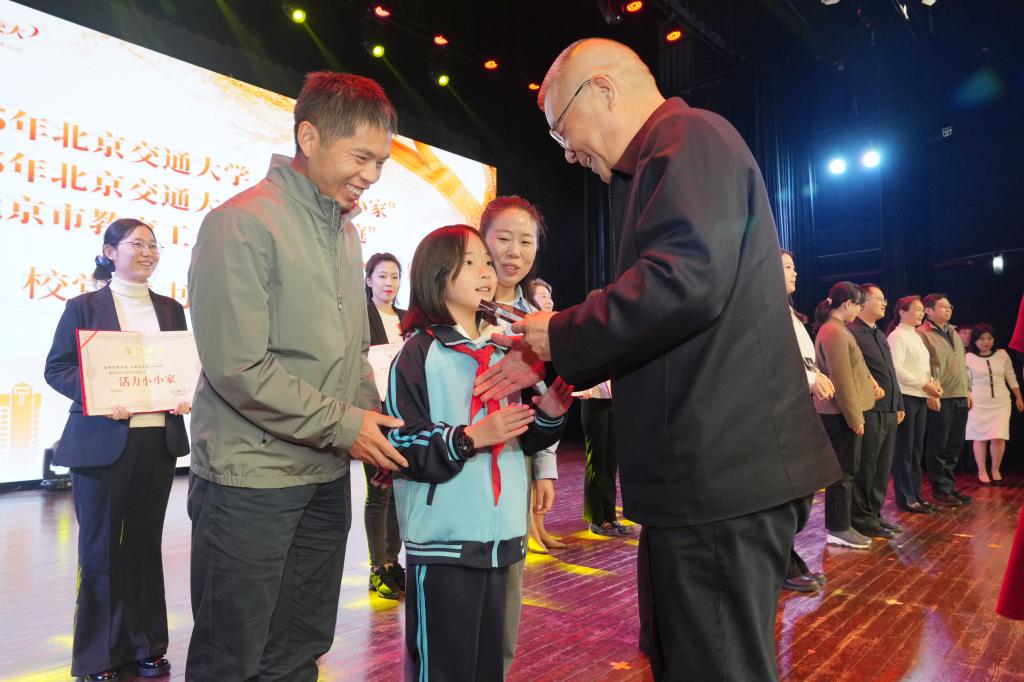 陈子季分别为我校获评2025年“北京市教育工会先进教职工小家”的二级工会、2025年北京交通大学“幸福家庭”获奖教职工家庭和“活力小小家”获奖工会小组颁奖。