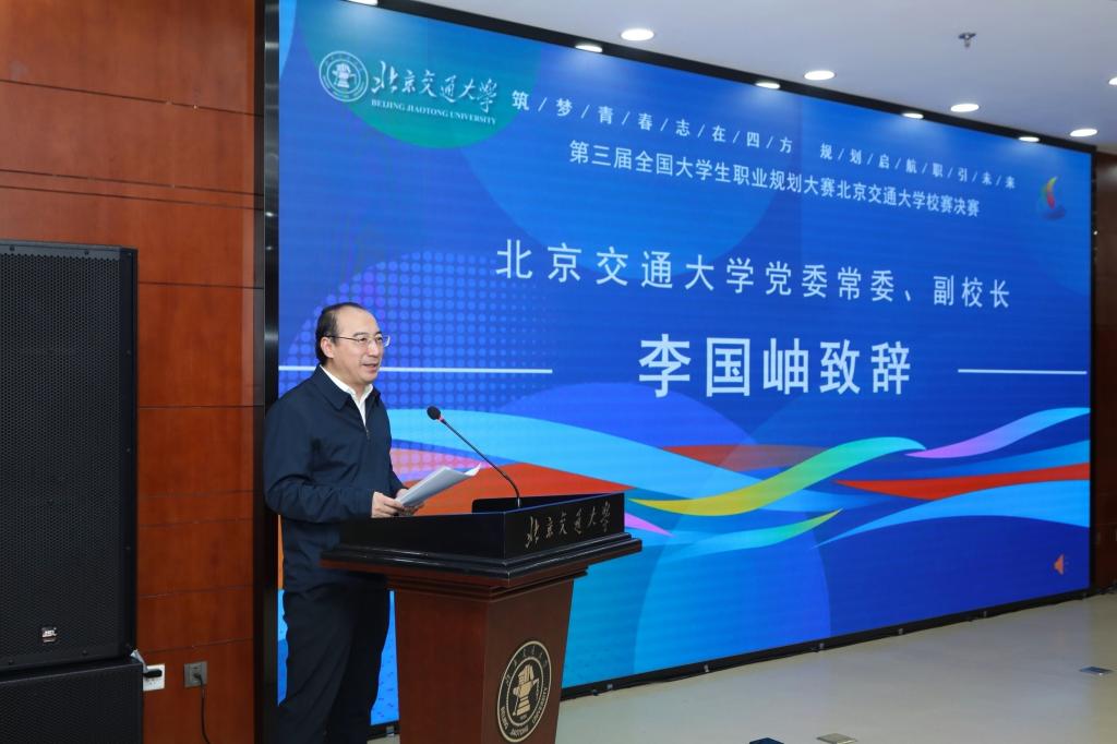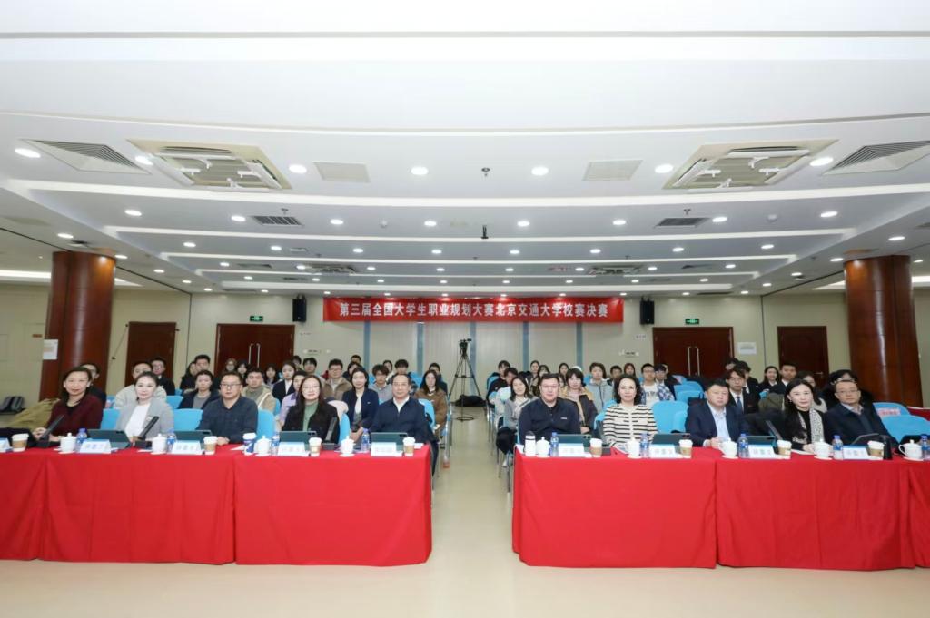 2025年12月11日,第三届全国大学生职业规划大赛北京交通大学校赛决赛在机械楼一层多功能厅举办,来自15个学院的16名个人赛道选手和10组团队赛道选手参与决赛。北京交通大学党委常委、副校长李国岫出席活动并致辞,北京高校大学生就业创业指导中心副主任朱况到场指导观摩比赛。来自北京航空航天大学、北京邮电大学、中国石油大学(北京)、荣耀公司、中能建国际建设集团、国投人力公司等单位的11名专家、领导担任比赛评委。比赛现场吸引了百余名师生到场观摩学习。