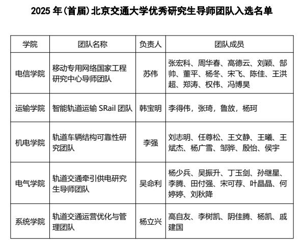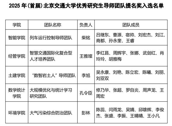 本次优秀研究生导师和团队评选于9月启动,经个人申请或单位推荐、专家评审等环节,评选出10名导师入选优秀导师、10支团队入围现场风采展示。评选会上,各支候选团队围绕“团队建设实力、科研创新成果、育人成效质量、团队文化理念”四个维度进行展示,深刻诠释了协同育人、立德树人的内涵。经综合评定,5支团队入选2025年(首届)北京交通大学优秀研究生导师团队,5支团队入选优秀研究生导师团队提名奖。