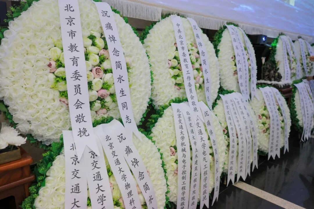 教育部、交通运输部、中国科学院、江西省人民政府、国家铁路集团有限公司、中共北京市委教育工作委员会、北京市教委、国家广播电视总局科学技术委员会、上海交通大学、复旦大学、中山大学、哈尔滨工业大学、西安交通大学、东南大学、北京航空航天大学、大连理工大学等40所高校和科研院所,中国信息通信科技集团有限公司、中天科技集团有限公司、中国光学学会、江西省科学技术协会、北京光学学会等15家企业单位和社会团体,以及江西省人民政府驻北京办事处、中共萍乡市委、萍乡市人大常委会、萍乡市人民政府、政协萍乡市委员会等发来唁电、唁函或敬献花圈,深切哀悼简水生院士。