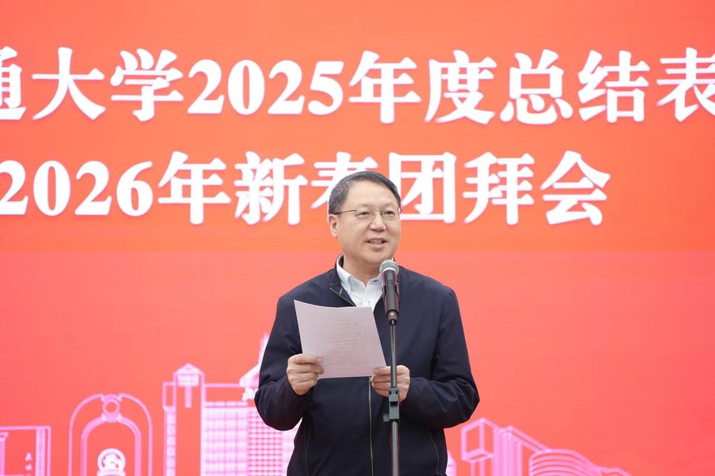 校党委书记陈子季致新春贺词,向为学校各项事业发展无私奉献的全校师生员工,以及关心支持学校发展的老领导、老同志和海内外校友表示衷心的感谢,并致以新春祝福。他指出,2025年是全体交大人砥砺前行、开拓创新的一年,学校在重大政治任务中挺膺担当,雄安校区建设全面加速,以体制机制改革赋能高质量发展,在党的建设、人才培养、学科建设、科学研究、队伍建设等方面取得丰硕成果,实现了各项办学指标不断跃升,办学实力稳步增强,展现了学校事业发展的深厚潜力和蓬勃生机。他强调,2026年是学校130周年华诞之年,是国家“十五五”规划开局之年,更是交大乘势而上、再续辉煌的关键之年,全校上下要以“一校多区”战略为引领,以立德树人为根本,以国家战略需求为导向,以高水平人才引育为引擎,以锻造过硬干部队伍为保障,凝心聚力、共谋发展,以更加优异的成绩向建校130周年献礼,奋力谱写学校高质量发展崭新篇章。