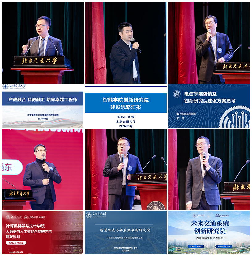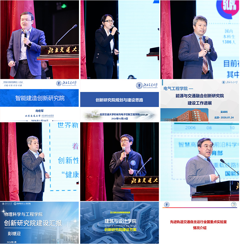 国家卓越工程师学院就培养高端人才、拓展产教融合新路径进行了介绍。智能学院、电信学院、计算机学院、经管学院、运输学院、土建学院、机电学院、电气学院、物工学院、建设学院以及全国重点实验室的相关负责人就首批创新研究院的建设构想进行了介绍。