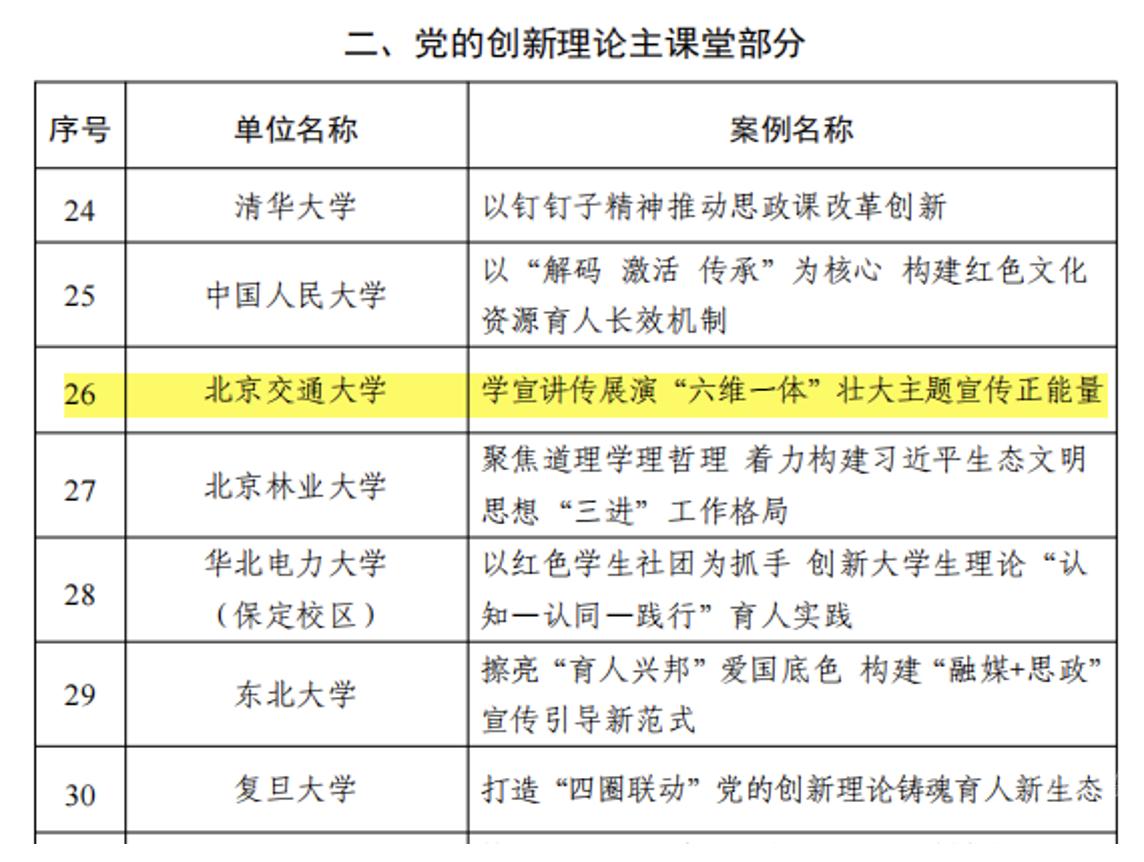 近年来,学校持续壮大主题宣传教育正能量,坚持以“学”夯实思想根基,把准引领方向,围绕“宣”做强“两论”宣传,深化“理”响交大;聚焦“讲”创新主题,实现“声”入人心;针对“传”强化融媒传播赋能,壮大主流声势;依托“展”强化展教融合,着力沉浸育人;“演”打造演艺精品,滋养师生心灵。通过“学、宣、讲、传、展、演”六维一体,以优质多样的内容、生动鲜活的形式、丰富多元的载体、入脑入心的话语,将党的声音传递到校园每个角落,推动实现育人机制更健全、主旋律更强劲、交大好声音更响亮。相关首创工作获多项教育部思政精品项目,获评首批全国高校礼敬中华优秀传统文化项目一等奖等荣誉,得到人民日报、新华社等重点媒体广泛报道,形成良好社会反响和舆论氛围。