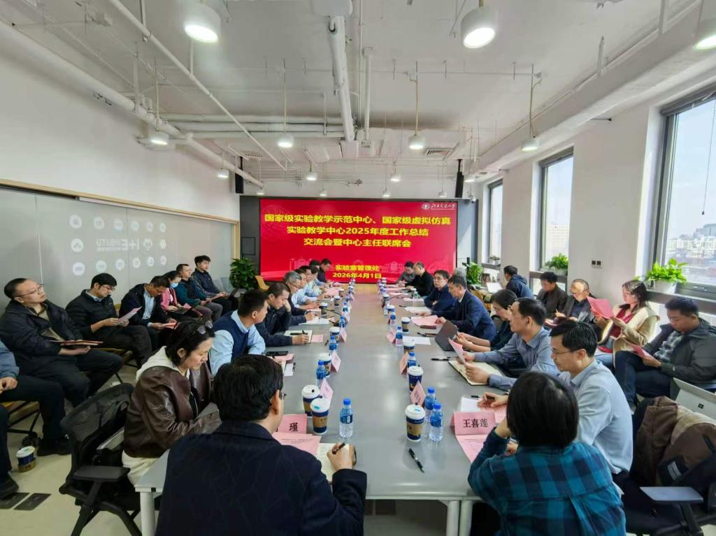 2026年4月1日下午,学校召开国家级实验教学示范中心、国家级虚拟仿真实验教学中心2025年度工作总结交流会暨中心主任联席会。副校长荆涛出席会议并讲话,会议由实验室管理处处长丁鹏玉主持。