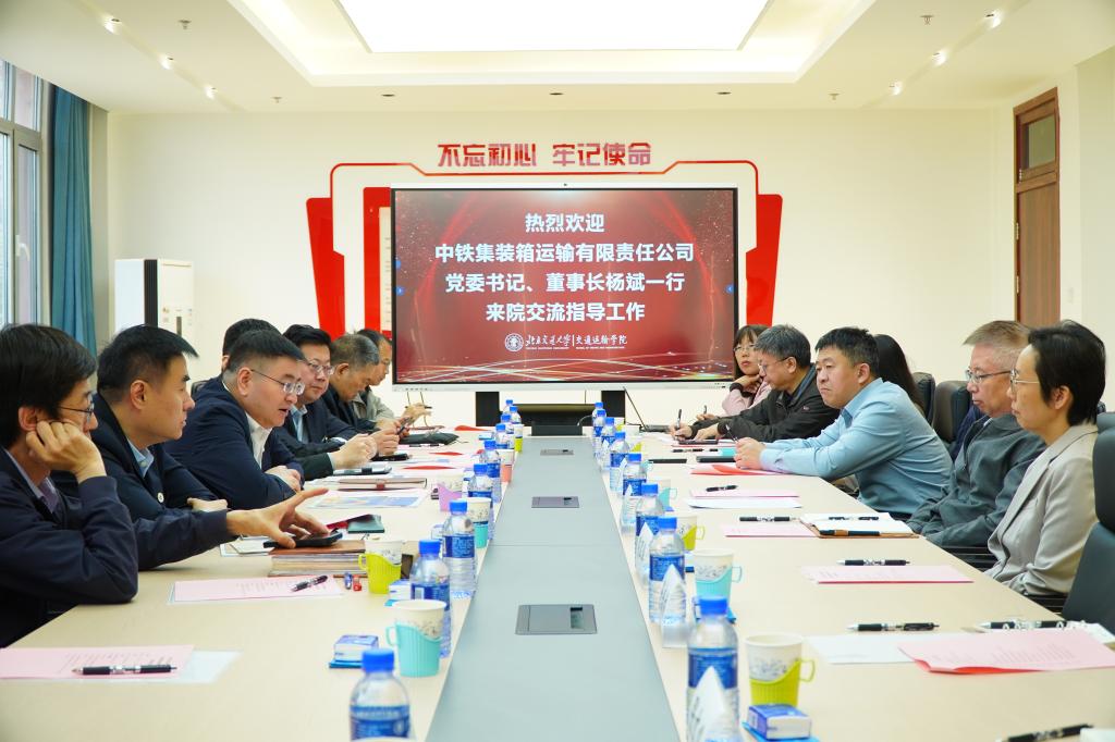 2026年4月14日上午,中铁集装箱运输有限责任公司党委书记、董事长杨斌一行到访我校交通运输学院,就深化校企交流合作进行座谈。副校长赵鹏,交通运输学院党委书记孙冬梅,院长孟令云,党委副书记、副院长陈军华,党委副书记于海妹,副院长何世伟以及各系所负责人参加座谈。会议由孙冬梅主持。