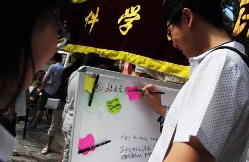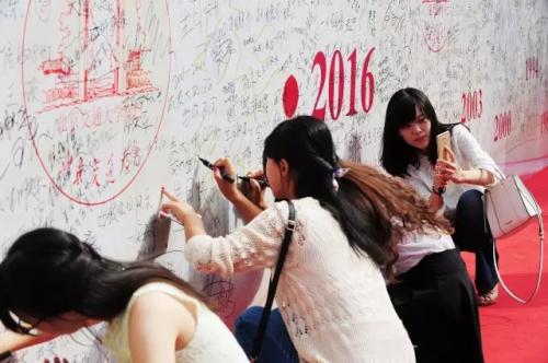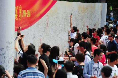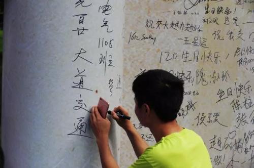 话说,好多交大校友也是专程从外地赶来为母校庆生,重回母校怀抱,不留个祝福怎么行呢?您看这签名墙上密密麻麻可全是字呀……