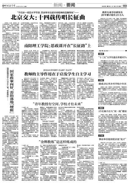 本报讯(记者 赵秀红)时不时回到母校,站在天佑会堂的台阶上,任人群往来,旁若无人地哼起:“横断山,路难行。敌重兵,压黔境……”这是很多北京交通大学的毕业生私下分享的美好片段。