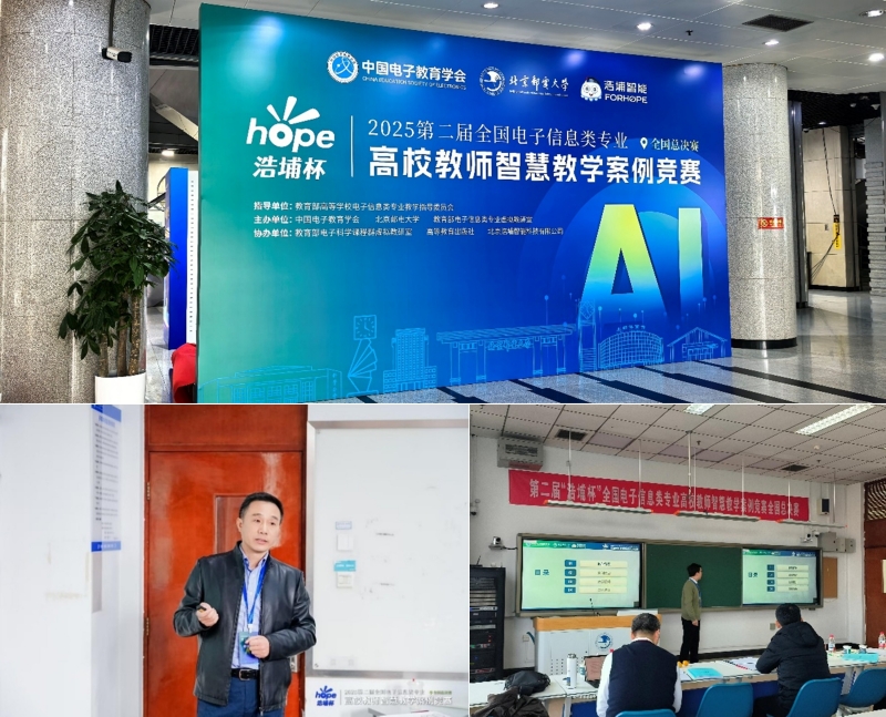 本次竞赛由教育部高等学校电子信息类专业教学指导委员会指导,中国电子教育学会、北京邮电大学及教育部电子信息类专业虚拟教研室联合主办。赛事以“育人为本、数字赋能、智慧创新”为指导思想,吸引了来自全国412支高校教师团队参赛。竞赛分为赛区初赛与全国决赛两个阶段,覆盖东部、西部、北部、华北部和中南部五大赛区。黄赞武、荀径两位教师在华北赛区初赛中脱颖而出,成功晋级全国总决赛,并最终摘得全国一等奖。
