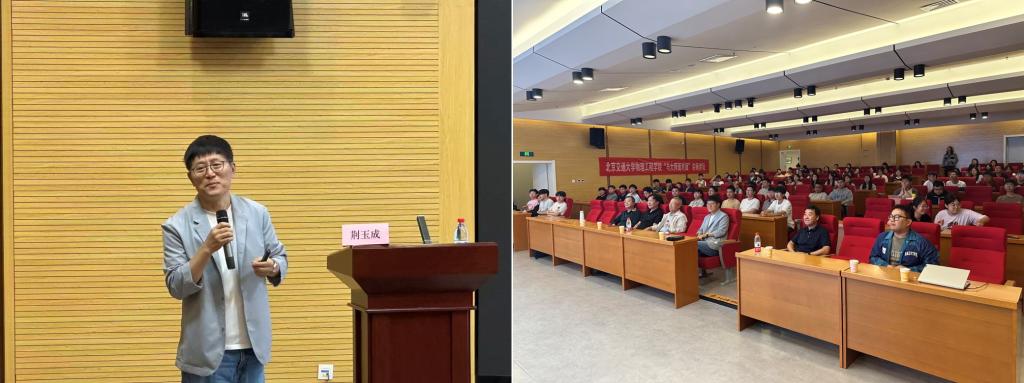 9月18日上午,由研工部主办、物理科学与工程学院承办的“与大师面对面”名师讲坛在唐山研究院图书馆一楼报告厅举办。北京交通大学兼职教授、国家电力投资集团原企业文化总监荆玉成以“科学与艺术终将在山顶相遇”为题为同学们带来了一场充满了“艺术与科技”的分享。物理工程学院教授王永生,唐山研究院党委书记、院长王大勇,计算机学院教授刘峰,运输学院教授钟雁及100余名研究生参与了本次活动,活动由物理工程学院院长唐爱伟主持。