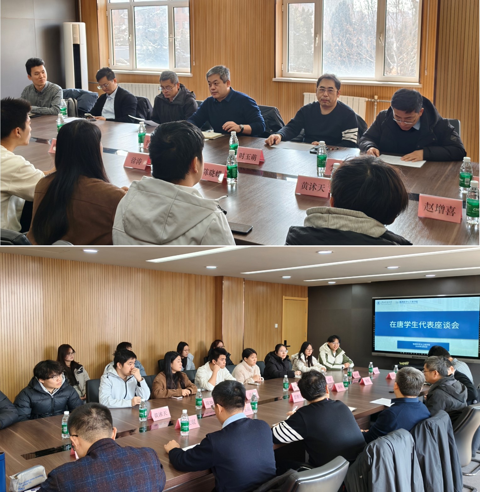 物理工程学院召开在唐学生代表座谈会。会上,学生们畅所欲言,针对在唐生活、科研学习、职业规划和近期情况等各抒己见,并提出了学习和生活的真切需求。老师们介绍了学院针对在唐学生的培养规划,针对个性化问题进行了一一解答并提出了意见建议。