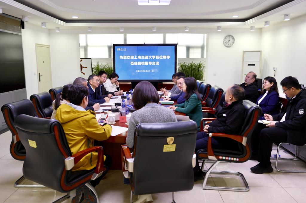 后勤集团总经理马强对姚奕一行的来访表示欢迎,并介绍我校后勤基本情况、创新发展模式、信息化建设等相关工作。他表示,北京交通大学与上海交通大学同根同源、一脉相承,有着深厚的历史渊源与紧密关系,希望以此次交流为契机,推动两校后勤资源共享与经验互鉴,共同探索高校后勤高质量发展新路径。