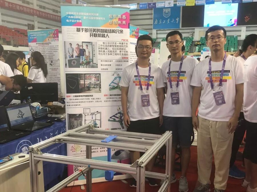 “知行机器人研发战队”依托我校机器人研究中心的冗余并联机器人理论研究平台,基于相对自由度计算公式和修正的G-K公式理论,研发的承载能力强、可规避奇异位形、实现大转角运动的“基于多任务的智能结构冗余并联机器人”荣获全国二等奖。