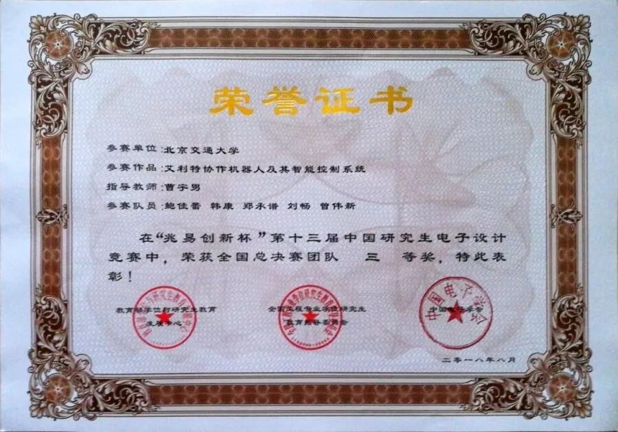 奖 项:华北赛区一等奖、全国三等奖