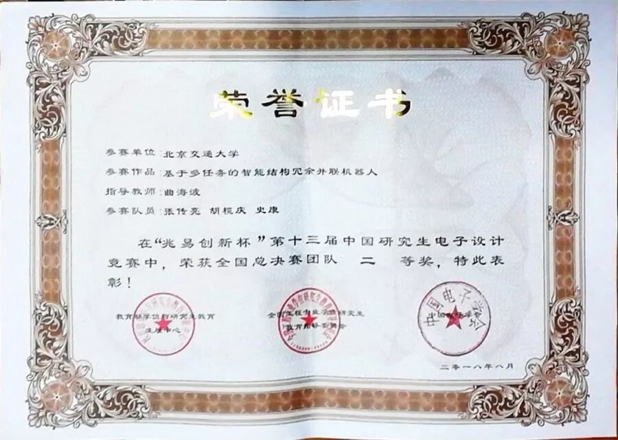 2018年8月19日-22日,由教育部学位与研究生教育发展中心、中国科协青少年科技中心、全国工程专业学位研究生教育指导委员会、中国电子学会共同主办的“兆易创新杯”第十三届中国研究生电子设计竞赛全国总决赛在南京市江北新区圆满闭幕。在研究生工作部以及相关学院研究生工作组的共同努力下,我校共选派出14个研究生队参加了华北赛区选拔赛。经过激烈角逐,其中有3个参赛作品获评华北赛区团队一等奖并入围全国总决赛,最终荣获全国总决赛团队二等奖1项、三等奖2项;4个参赛作品获评技术赛华北赛区团队二等奖、4个参赛作品获评技术赛华北赛区团队三等奖,3个商业计划书作品获评华北赛区团队三等奖。我校还获评全国总决赛优秀组织奖、华北分赛区优秀组织奖。电气学院王毅教授担任专家评委,受邀参加华北赛区选拔赛及全国总决赛。
