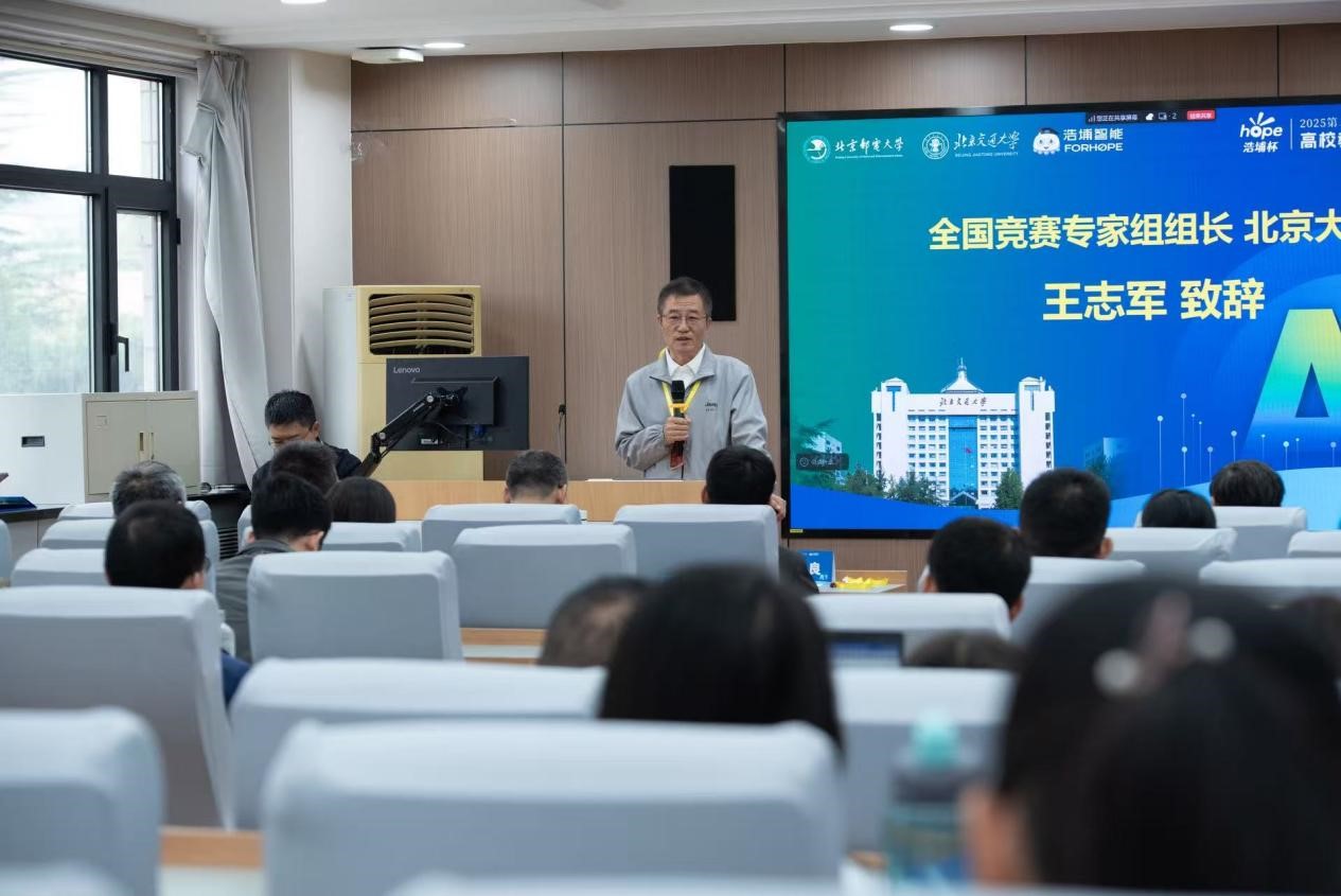 王志军阐释了本次竞赛的背景与深远意义。他指出竞赛的核心目标是搭建华北赛区高校教师智慧教学的交流平台,通过互学互鉴凝聚成协同发展的“智慧教学共同体”。此次竞赛并非单纯的技能比拼,更是一场对教育未来的深度探索。他提出在AI驱动教育生态全面转型的时代浪潮下,教师该如何以AI为工具,重塑育人模式、提升教学效能的问题,希望每位参与者都能以赛促思、以思促行,在实践中探索AI赋能教育的新路径,真正实现技术与教育的深度融合。