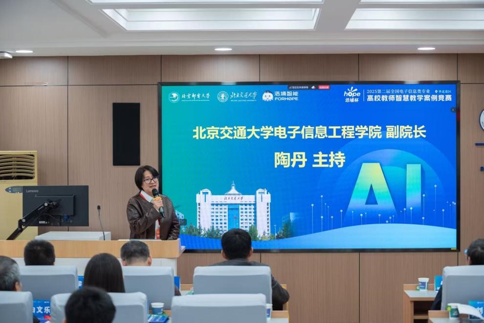 2025年10月12日,由教育部高等学校电子信息类专业教学指导委员会指导,中国电子教育学会、北京邮电大学、教育部电子信息类专业虚拟教研室主办,北京交通大学承办,北京浩埔智能科技有限公司协办的第二届全国电子信息类专业高校教师智慧教学案例竞赛(浩埔杯)华北赛区初赛在我校举行。校党委常委、副校长李国岫出席竞赛开幕式,电子信息工程学院党委书记刘东平,全国竞赛专家组组长、北京大学教授王志军,竞赛全国组委会秘书长、北京交通大学教授侯建军,华北赛区评审专家组副组长、北京邮电大学教授郭彩丽,华北赛区组委会评审专家,全体参赛教师,冠名企业北京浩埔智能科技有限公司总经理秦雪良等参加开幕式。开幕式由电子信息工程学院副院长陶丹主持。
