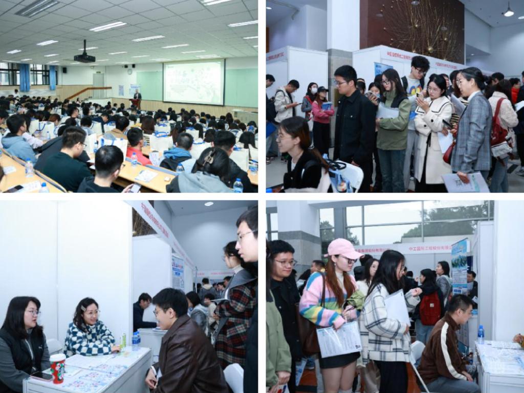 国机集团组织16家二级单位集中进校开展招聘活动,专场宣讲会现场座无虚席,王博和学校就业与创业指导中心主任张博分别致辞,中工国际副总经理杨志刚代表集团介绍业务领域和人才招引政策,中国中元工程经济咨询中心总经理刘振光、中工国际第一工程事业部二级业务员宋佳乐作为校友代表向在场毕业生分享了在国机集团的成长历程和宝贵收获,引发热烈反响。