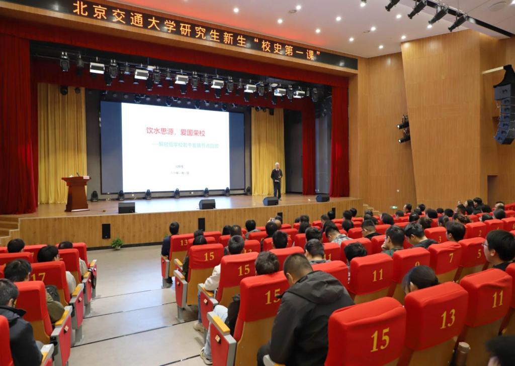 谈振辉结合学校近130年来的办学历史,生动形象地讲述了学校的校名校址变迁过程,回顾了新中国成立以来学校在人才培养、学科建设、对外合作等关键节点的重要事件,并在讲座结束后与同学们互动交流。与会师生纷纷表示,通过讲座对学校历史有了全面深入的了解,更汲取了自信和力量,要继承交大人“饮水思源、爱国荣校”的光荣传统,勇担时代使命,续写北交大新的辉煌。