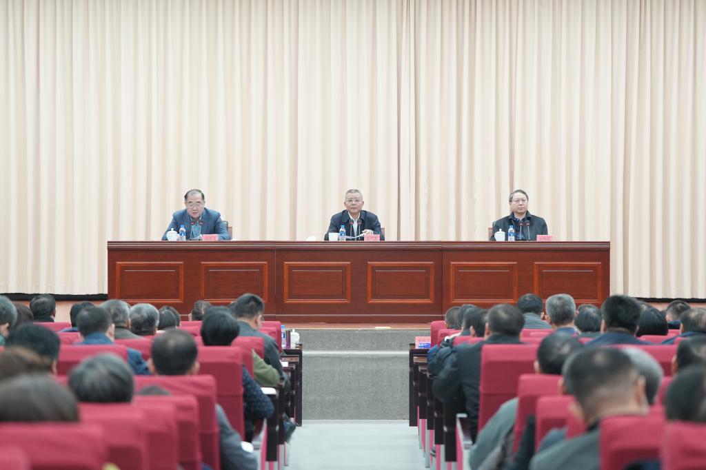 2025年10月23日,我校中层干部换届动员部署会在中心报告厅召开。校党委书记陈子季作动员讲话,校党委副书记、校长余祖俊主持会议,校党委副书记姚念龙具体部署换届工作。校领导班子全体成员和全体中层干部出席会议。