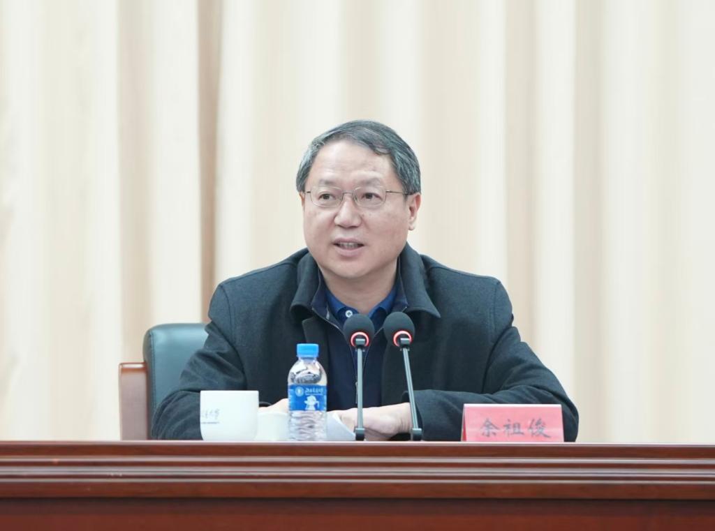 余祖俊在主持中指出,干部换届是学校事业发展进程中的一件大事,不是简单的岗位调整,而是学校应对挑战、抢抓机遇的关键一招。他强调,全体干部教师要深刻认识换届意义、正确看待“进退留转”、保证工作接续稳定,以高度的责任感、使命感,共同做好此次换届工作,同时要继续锚定总目标、握好接力棒,紧盯教学、科研、人才培养等关键领域重大任务的落地见效,确保学校发展各项目标任务圆满完成。