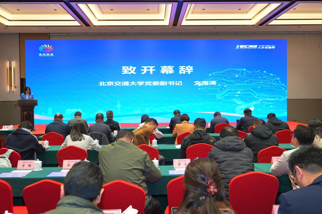 文海涛在大会开幕式致辞。文海涛强调,北京交通大学党委高度重视统战工作和党外知识分子工作,不断完善工作机制、加强队伍建设,充分发挥新时代统一战线的法宝作用。她表示,作为扎根海淀的百年学府,北京交通大学始终将服务区域发展视为己任。此次校地联手承办论坛,不仅是校地统战工作深度融合的一次生动实践,更是智力资源强强联合的成果。期待在思想碰撞中,诞生更多有价值的思路,为海淀创新发展注入强劲动力。