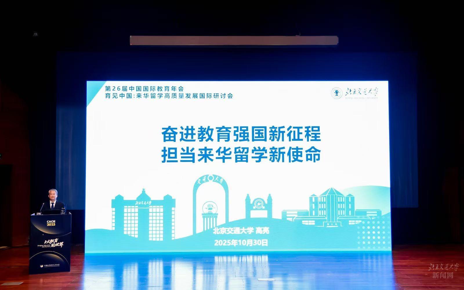 研讨会上,高亮作题为《奋进教育强国新征程,担当来华留学新使命》的主旨报告。围绕招生工作、教育教学与管理服务三个方面,分享了北京交通大学在推进教育对外开放、打造“世界交通人才首选留学目的地”方面的创新实践,并介绍了学校在人才培养、教育范式与社会声誉等方面取得的显著成效。指出我校来华留学工作充分依托“智慧交通”与“双一流”学科优势,打造具有国际影响力的“留学北交”品牌。2023年,学校明确将建设“世界交通人才首选留学目的地”作为发展目标。2024年1月,国家主席习近平复信肯尼亚留学生及校友,勉励他们为构建高水平中非命运共同体贡献力量。回信精神已全面融入学校国际化办学实践,成为推动来华留学高质量发展的强大引擎。