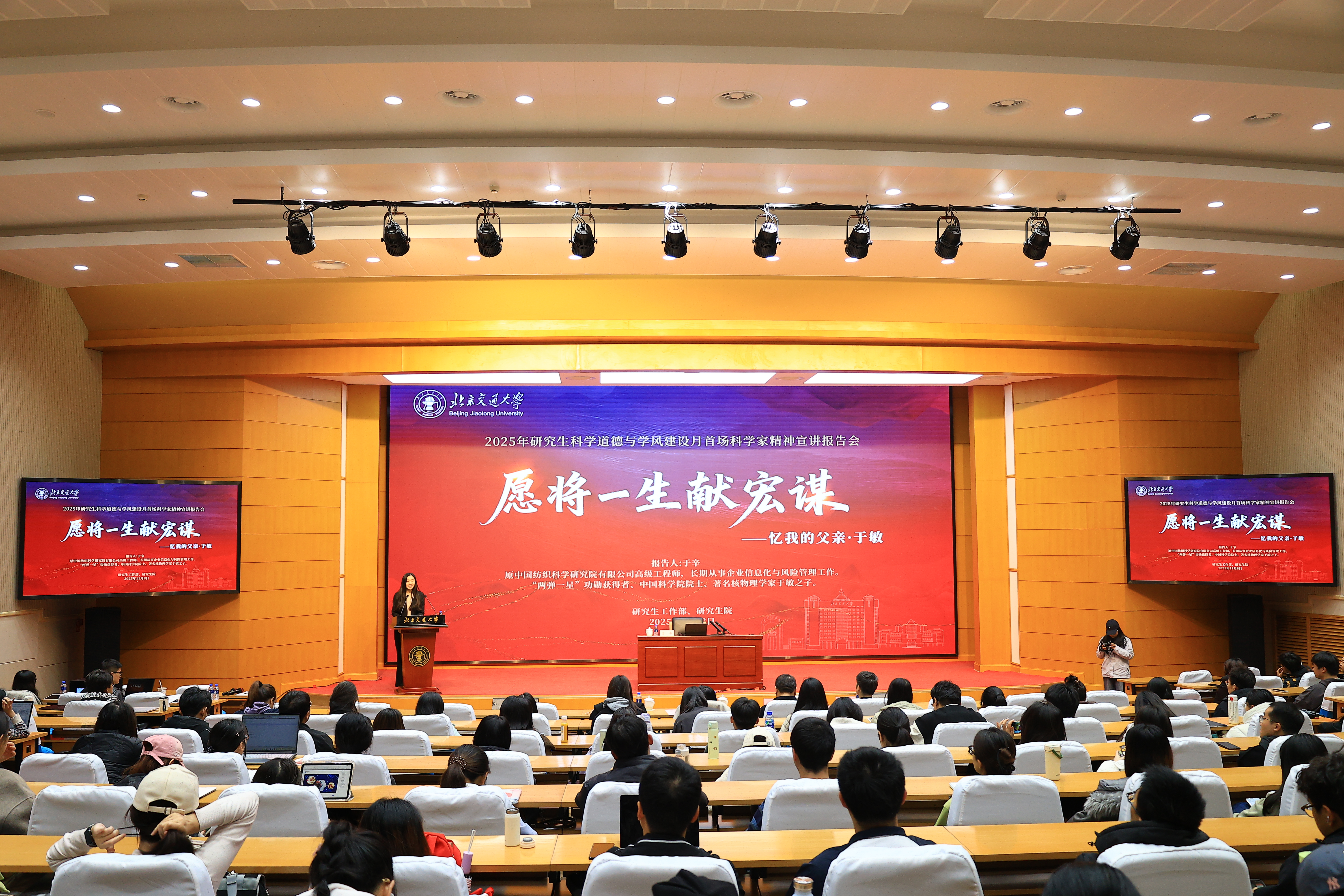与会师生纷纷表示,要从于敏院士等老一辈科学家的崇高精神中汲取奋进力量,以爱国之情、报国之志勇攀学术高峰,在强国建设的生动实践中展现使命担当。