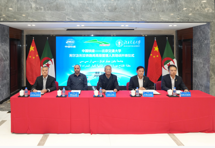 2025年11月17日下午,在阿尔及利亚铁路局和中国铁建的支持下,阿尔及利亚铁路局—中国铁建高级管理人员培训班开(第二期)班仪式在我校举行。中国铁建国际集团总经理、党委副书记徐华祥,中国铁建国际集团副总经理王玉强,阿尔及利亚国家铁路局人力资源发展部经理迪法拉·埃泽迪,北京交通大学副校长高亮出席开班仪式。仪式由继续教育学院院长孙长索主持。