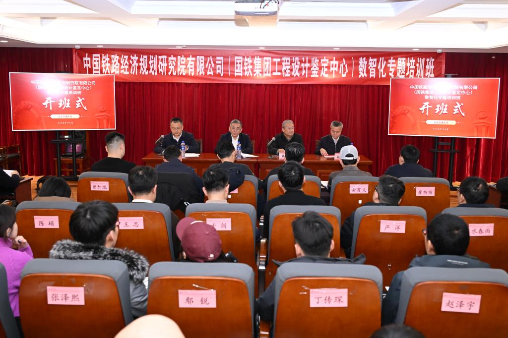 2025年12月14日,中国铁路经济规划研究院有限公司(国铁集团工程设计鉴定中心)数智化专题培训班开班仪式在我校举行。中国铁路经济规划研究院有限公司(国铁集团工程设计鉴定中心)党委书记、院长周红云,北京交通大学副校长高亮出席开班仪式,仪式由中国铁路经济规划研究院有限公司(国铁集团工程设计鉴定中心)副总经理刘大富主持。