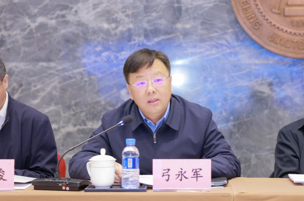 弓永军代表交通运输部科技司向与会院士、专家及北京交通大学长期以来对交通运输行业科技创新的关心与支持表示感谢。他指出,实验室聚焦智能、安全等核心方向,构建了轨道交通自主运行技术体系,凭借科学规范的管理和高效协同的机制,在重大技术攻关、高端人才培养、高水平对外合作等方面成效显著,充分彰显了国家队的责任担当与过硬实力。他对实验室发展提出了期望,希望实验室当好轨道交通技术创新的牵头单位,打造一流国家战略科技力量;当好轨道交通产业协同的联动枢纽,推动轨道交通产学研联动和成果转化落地;当好轨道交通战略科技人才的培育基地,培育高水平战略科技人才。
