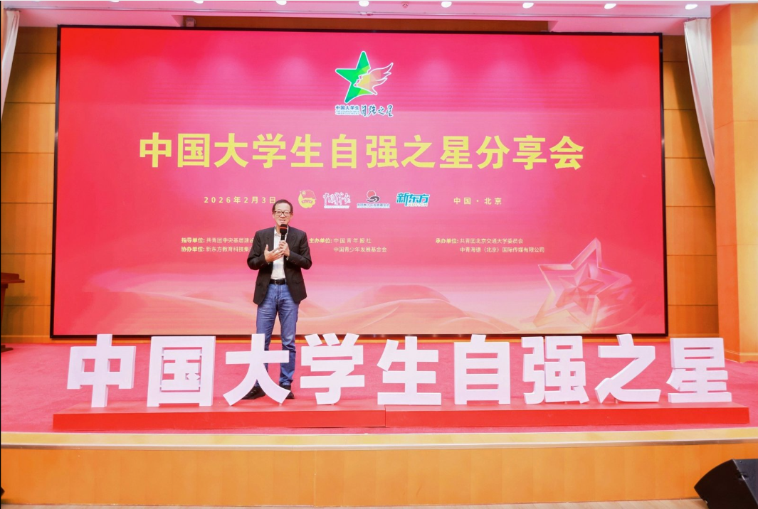 2026年2月3日下午,2025年“中国大学生自强之星”活动分享会在我校科学会堂举行。我校党委常委、副校长李国岫,新东方教育科技集团董事长俞敏洪,共青团中央基层建设部副部长高雅娟,全国政协委员、中国青年报社党委书记张坤,中国青少年发展基金会秘书长张华,新东方教育科技集团副总裁王学文及我校师生代表200余人出席活动。