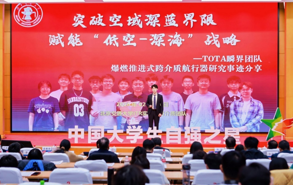 会上,自来全国各地的7位2025年“中国大学生自强之星”个人及科创团体代表分享了他们的成长故事和奋斗经历,我校第十九届“挑战杯”竞赛特等奖获奖团队“TOTA瞬界”作为全国科创团队获奖代表分享他们集智科研攻关经历。