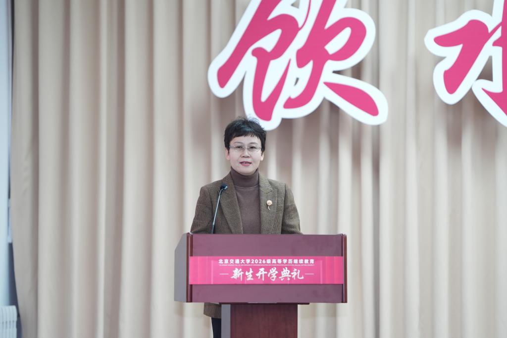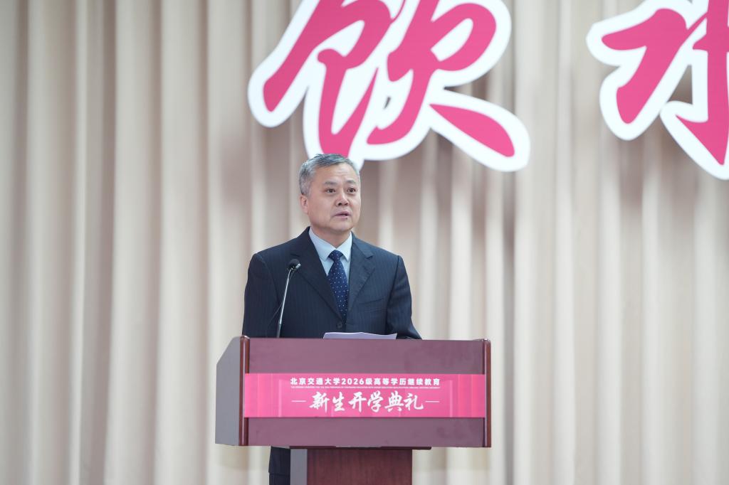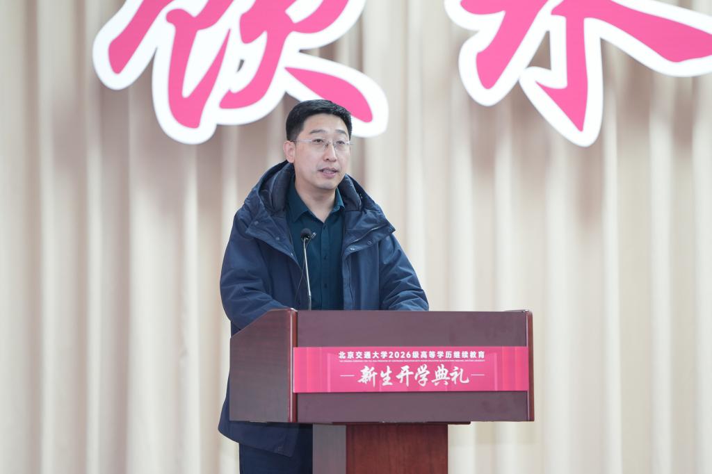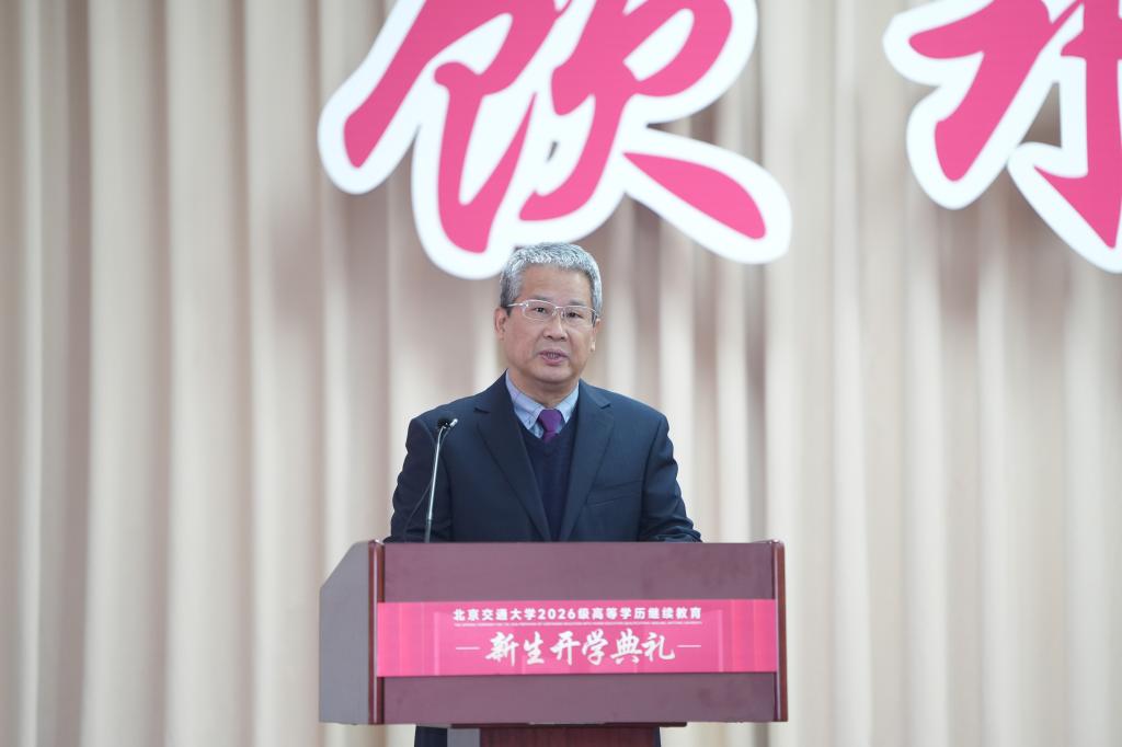 高亮代表学校向4350名新生致以热烈祝贺,并介绍了学校130年发展历史及服务国家战略所作的贡献。他指出,今年是“十五五”开局之年,学历继续教育已经进入“内涵建设”新阶段,学校将依托优质资源与特色学科,深化产教融合,推进与非学历教育“双向赋能”,强化与全日制教育融合,持续为交通强国输送高素质人才。希望同学们践行“知行”校训,赓续“饮水思源”传统,将个人生涯与国家发展结合,在以中国式现代化全面推进强国建设、民族复兴伟业的时代征程中,继往开来、擘画新章。