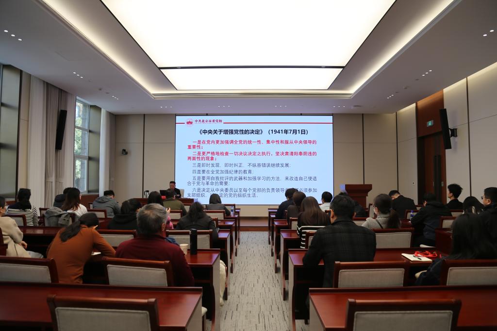 本次学习设置理论授课与主题教室沉浸式研学两个环节。在理论课堂上,北京市委党校政治学教研部教授周美雷以“坚决做到‘两个维护’”为主题作专题报告。授课中,周美雷从历史纵深与现实维度双重角度,深刻阐释“两个维护”的重要性与实践要求,结合当前复杂世情、国情精准分析,深入阐明“两个维护”是党的建设和时代发展的核心要求,引导全体同志旗帜鲜明讲政治,深刻领悟“两个确立”的决定性意义,切实做到“两个维护”。