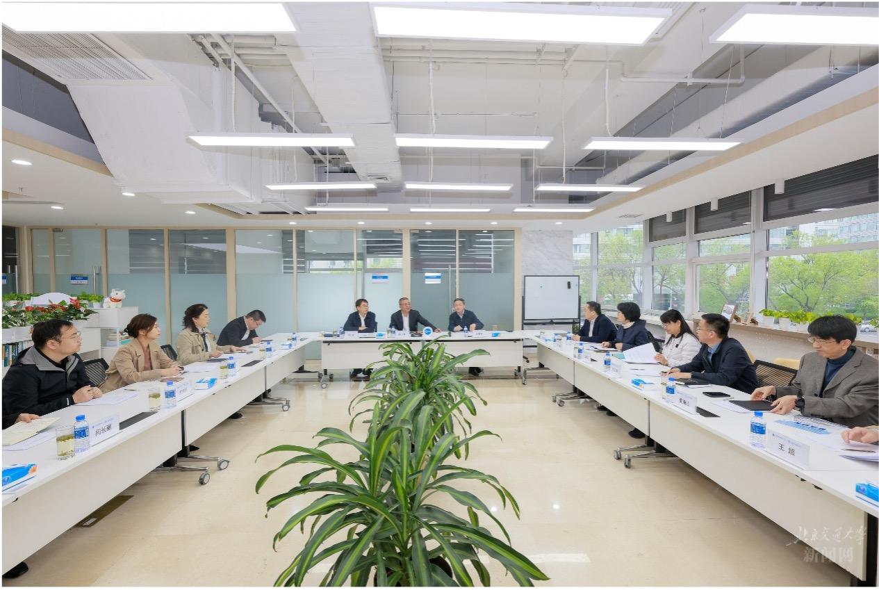 2026年4月14日上午,校党委书记陈子季带队调研可持续交通创新中心国家高端智库建设工作并召开座谈会。副校长荆涛主持会议。